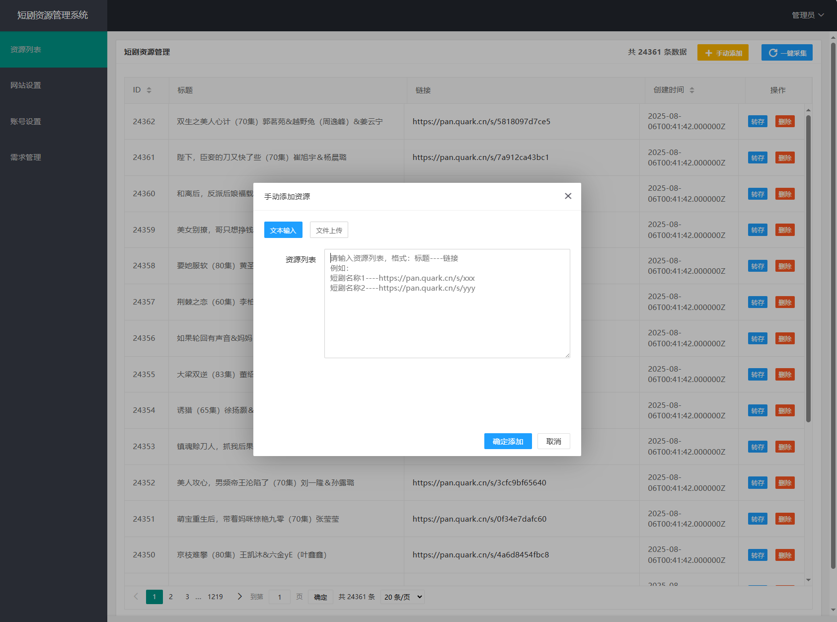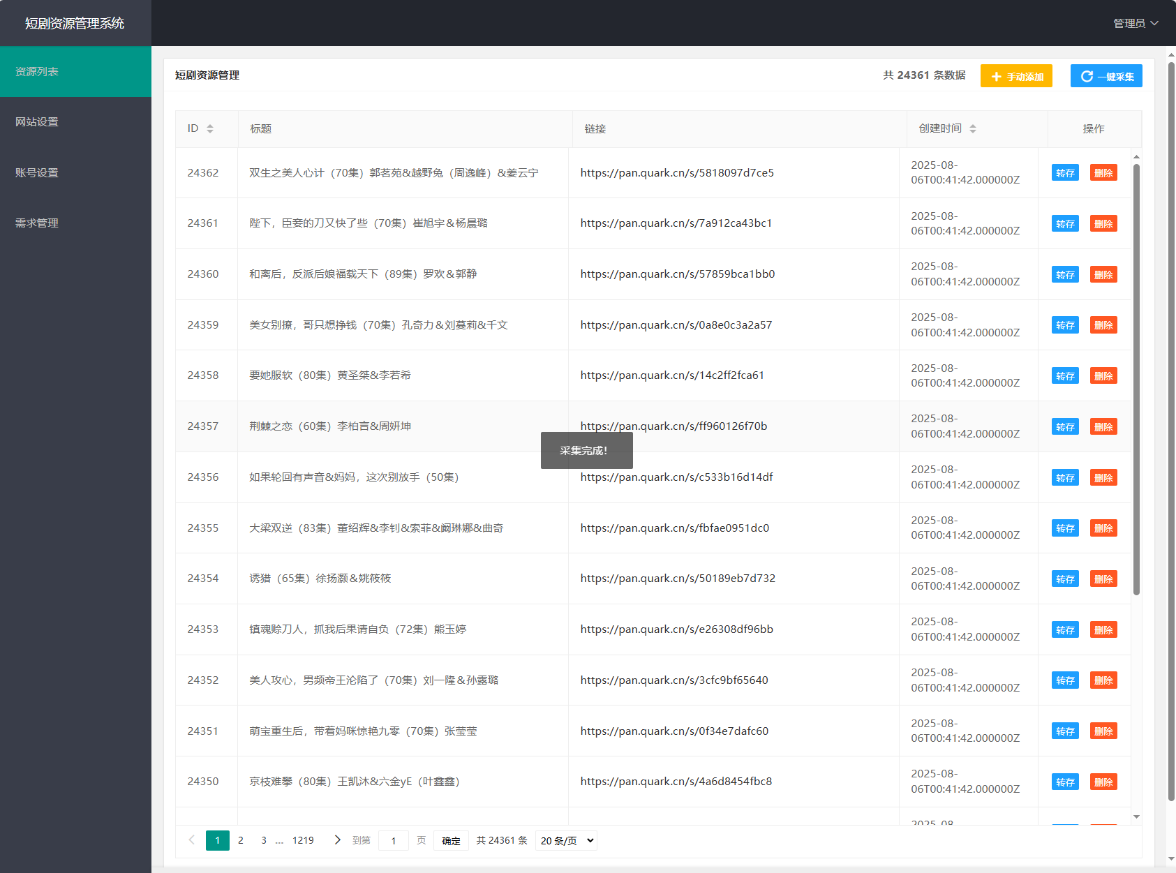 网盘短剧资源转存项目源码 支持夸克 带后台 附教程小编3个月前更新关注私信0138220 简介: 网盘短剧资源转存项目源码 支持夸克 带后台 附教程 安装教程: 测试环境:Nginx + PHP7.4 + MySQL5.7 数据库信息配置文件:.env 网站运行目录设置为:public 图片: 网盘短剧资源转存项目源码 支持夸克 带后台 附教程此内容为付费资源,请付费后查看¥0.88超级会员免费立即购买建议开通会员可以无限制的免费下载付费资源© 版权声明文章版权归作者所有,未经允许请勿转载。THE END网站源码 喜欢就支持一下吧点赞20赞赏 分享QQ空间微博QQ好友海报分享复制链接收藏
